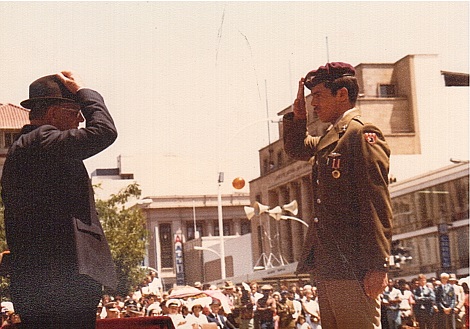 Riflemen de Lange and Mare carried the injured Major Bell to the helicopter while the remaining Paratroopers scramble to boarded. The Puma lifted off under fire.