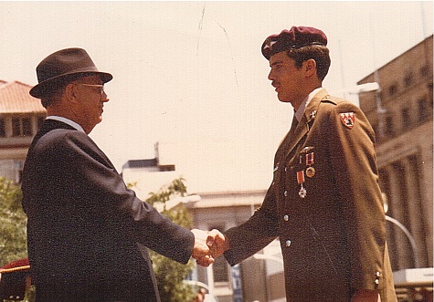 Rifleman C. N. McNamara was awarded the Honoris Crux for his actions as a member of a six man stick of South African Paratroopers (Parabats) who were airlifted by Puma helicopter on a search-and-rescue mission to locate and extract an Impala pilot, Major Aubrey Bell, whose Impala aircraft had been struck by enemy anti-aircraft fire and had crashed near an enemy base close to the Angolan town of Omupanda.